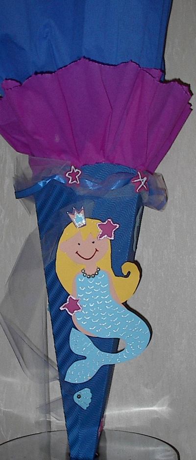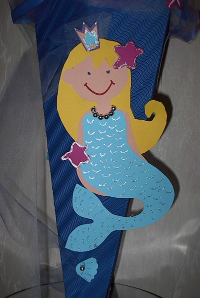Netterweise bot man mir einen Donnerstag Termin an und so saß ich gestern im Kindergarten und bastelte mit unseren Töchtern eine Meerjungfrau-Schultüte.